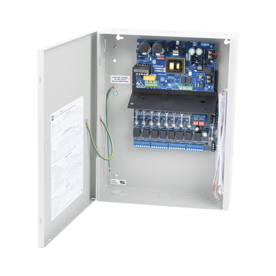 Fuente de 12 Vcc @ 10 A con 8 entradas de control a 8 salidas; Aplicación para Control de Acceso, Alarmas, y Detección de Incendio. Con capacidad de respaldo
