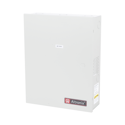 Conversión 115 VCA a 12 VCC, 8 salidas independientes, Corriente de suministro continuo de 10 amperios, 8 entradas combinables, abiertas o de colector, Función de desconexión de alarma contra incendios, Capacidad de batería de respaldo, sin incluye batería