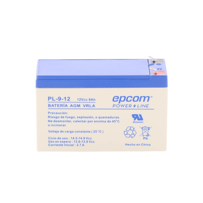 La serie de baterías EPCOM POWERLINE, están diseñadas con tecnología AGM-VRLA ( Fibra de vidrio absorbente, con válvulas de regulación), placas de alto rendimiento y electrólito para proporcionar una salida de energía adicional. Las baterías de la serie EPCOM POWERLINE son baterías de respaldo para equipos electrónicos, con una vida útil de diseño flotante de 5 años a 25°C. , aprobado por UL ( MH64542 ).