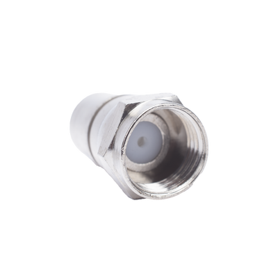 Conector F macho plegable para simplicidad, Compatibilidad con cable RG-6 estándar, Cuerpo de bronce niquelado para durabilidad, Contacto central chapado en oro para conductividad superior, Aislante dieléctrico de teflón para mayor aislamiento