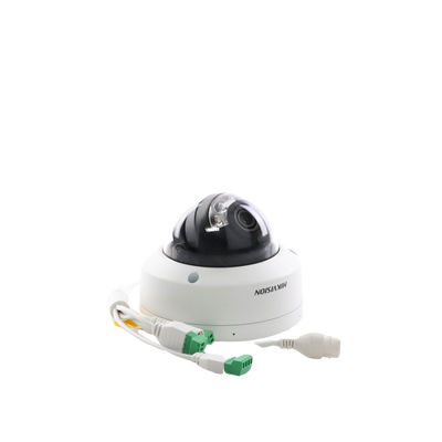 Resolución de 4 MP para imágenes detalladas, Iluminación mínima de 0.001 lux con DarkFighter, Distancia infrarroja de 40 metros con Smart IR, Almacenamiento micro SD hasta 512 GB, Compatibilidad con Hik-Connect y Onvif