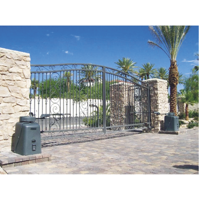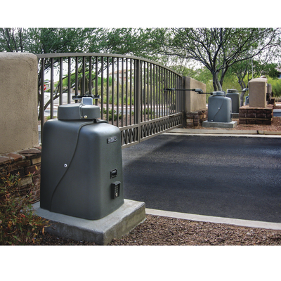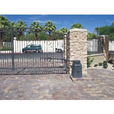 Voltaje de operación 115V, potencia de 1 HP, Soporta puertas hasta 907 kg y 7.62 m, Apertura de 90° en aproximadamente 16 segundos, Marco de acero galvanizado con cubierta de poliuretano, Plug in para dispositivos de seguridad