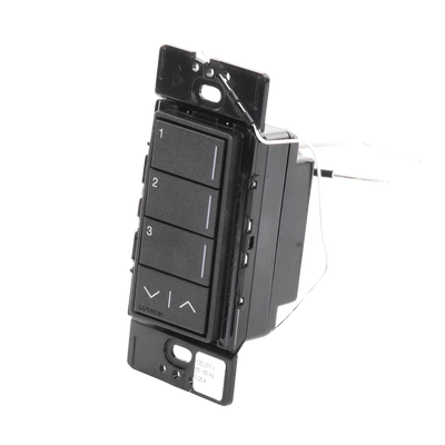 Botonera para 3 escenas con retroiluminación, Dos botones para ajustar niveles subir/bajar, Compatible con hub RadioRA3 RRPROC3KIT, Instalación en caja estándar para control, Grabado personalizado en botones de control
