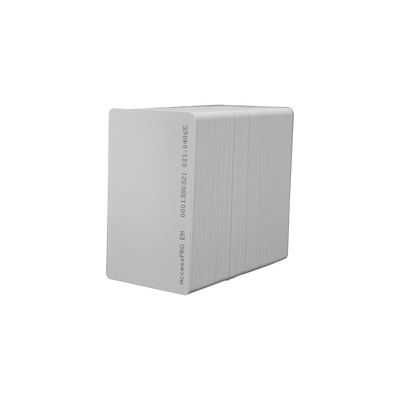 Formato Wiegand 26 bits estándar, Chip TK4100 EM card, frecuencia 125 kHz, Dimensiones compactas: 85.6 x 54 x 0.1 mm, Imprimible en ambas caras, máxima personalización, Material PVC, ligero y duradero